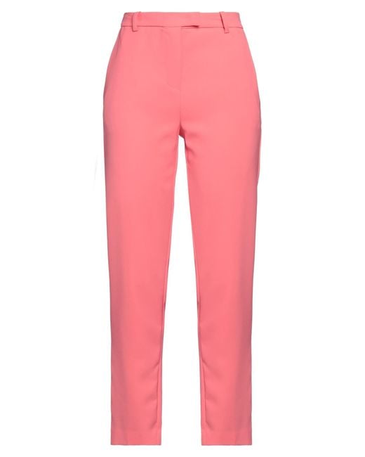 Tapered pants, crepe, stretchy fabric, solid color, no appliqués, high waisted, belt loops, regular fit, zipper fastening, hook fastenings, slit pockets, decorative pocket, machine wash or dry clean, do not bleach, do not tumble dry , Color: Coral , Size: 2