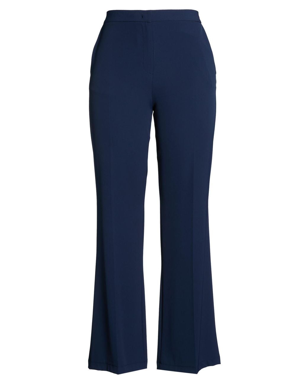 Flared pants, crepe, stretchy fabric, solid color, no appliqués, high waisted, regular fit, hook fastenings, zipper fastening, slit pockets, machine wash or dry clean, do not bleach, do not tumble dry , Color: Navy , Size: 10