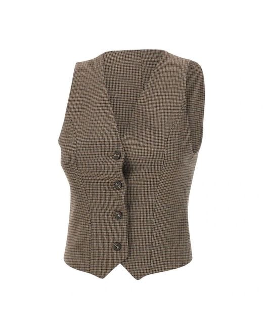 Kaos Micro Houndstooth Vest combines a refined micro houndstooth pattern with stretch viscose blend fabric for comfortable, tailored layering. The asymmetrical hem and logoed button closure provide a distinctive finish; made in Italy. Key attributes: Brown | Stretch viscose blend | Stretch | Logoed button closure | Tone-on-tone lining | Micro houndstooth pattern | Asymmetrical hem | Dimensions & fit: Regular fit | Composition & care: Stretch viscose blend Color: brown