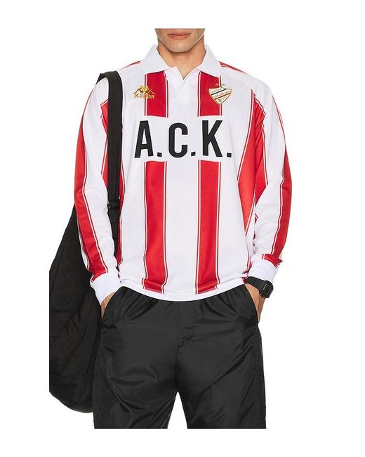 Kappa Authentic Oden Long Sleeve Jersey in White. - size L (also in M, S) Kappa Authentic Oden Long Sleeve Jersey in White. - size L (also in M, S) 100% polyester. Machine wash. Quarter button closure. Embroidered front graphics. Midweight knit fabric. KAPR-MS13. 311P37W-R10. Past. Present. Future. Iconic. Welcome to the world of Kappa x Juicy Couture. For the first time, Italian heritage meets casual luxury for a nostalgic journey, inspired by the marriage of contemporary sportswear and rise of ultra pop-culture. Form fitted tracksuits and satin bombers have been joined by studded tube tops, and cropped hoodies, biker shorts and, of course, iconic velour for a timeless feel that is the perfect combination of sporty and unmistakable glam. Color: red