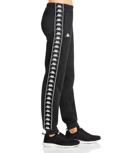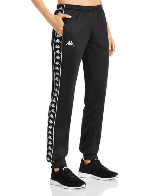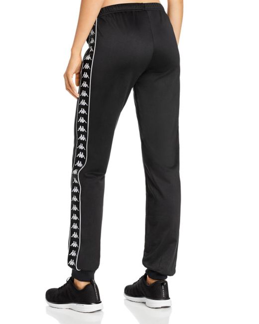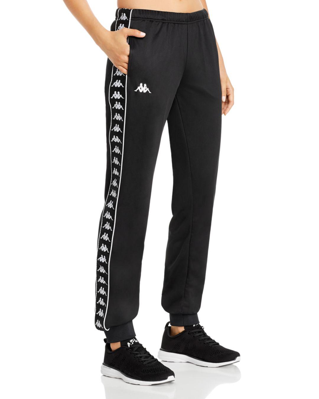 Fits true to size, order your normal size. 9" rise, 30" inseam, 10" leg opening, based on a size small. Model measurements: 5'10" height, 33.5" bust, 23.5" waist, 34.5" hips, wearing a size small. Elasticized waist with inner drawstring. Logo at right leg. Side slit pockets. Piped omini logo trim at sides. Rib-knit cuffs. Pull-on style. 100% polyester. Machine wash. Color: black