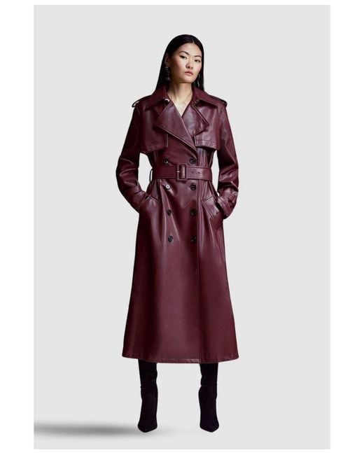 - Tailored Faux Leather Belted Trench Coat