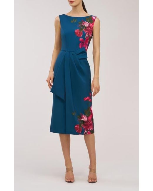Women's Blue Devin Placement Print Pleated Midi Cocktail Dress