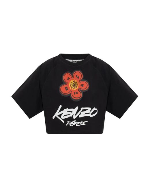 Women's Black Boke Flower Crop T-Shirt