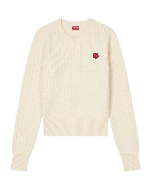 Women's White Cable-Knit Logo Knitted Sweater