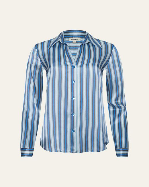 Women's Blue Tyler Striped Silk Button-Front Blouse