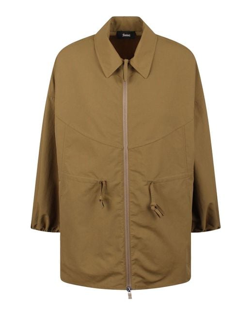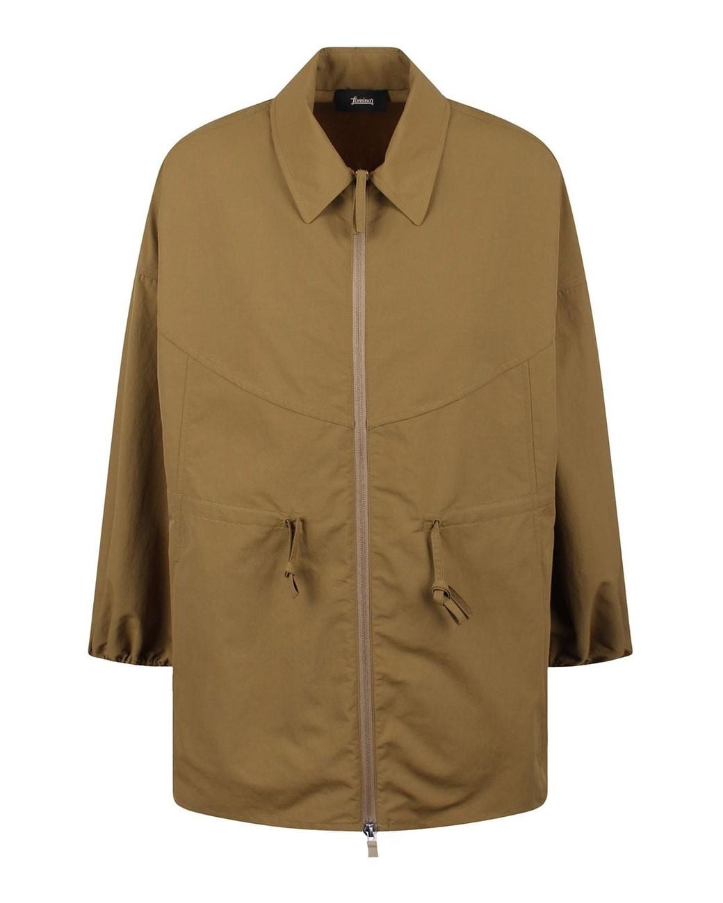 Shacket in Tech-Popeline of Laminar neck with a shirt cape long sleeves with elastic balloon with pocket pockets pockets with double cursor zip pockets Color: natural