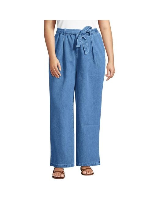 Women's Blue High Ridge Twill Pull On Pleated Wide Leg Pants