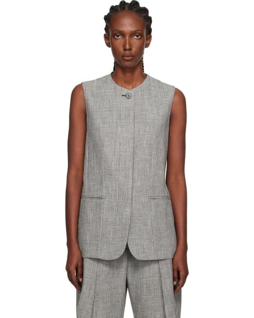 Viscose- and cotton-blend tweed vest. · Crewneck · Button closure · Darts at front · Welt pockets · Partial twill lining Supplier color: Heather gray