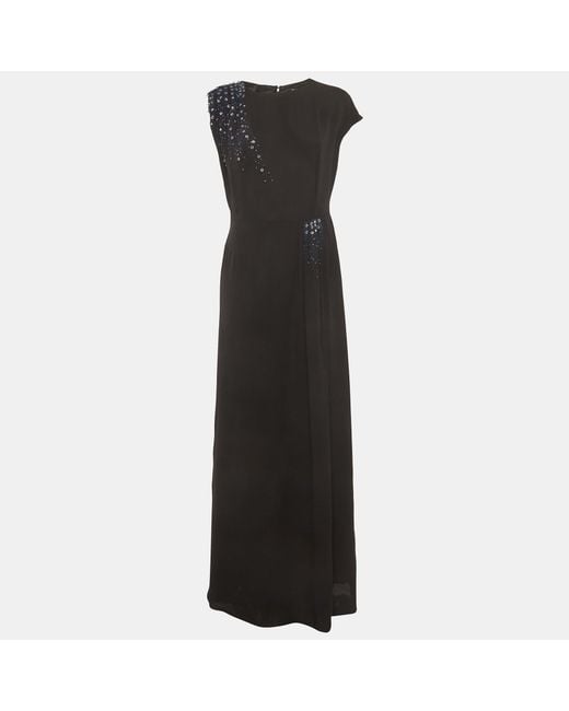 Women's Black Crepe Flared Maxi Dress