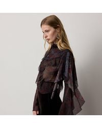 Go to Ralph LaurenThe season's painterly floral motif decorates this tie-neck blouse which features cascading ruffles and blouson sleeves. Airy crinkle georgette offers an effortless drape and enhances its romantic spirit.