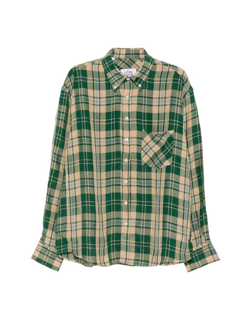 Men's Green Check-Pattern Button-Down Shirt