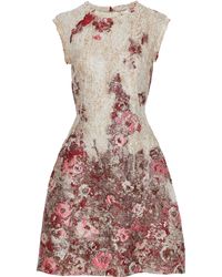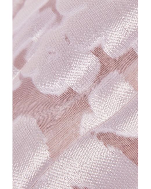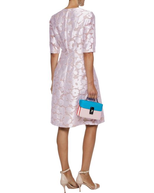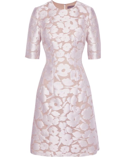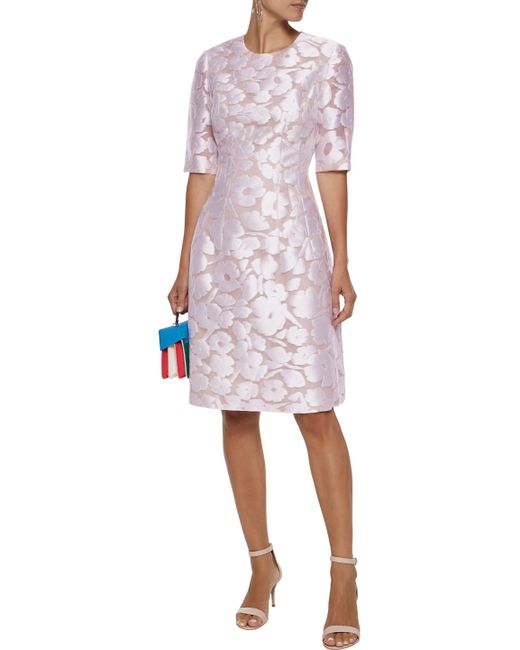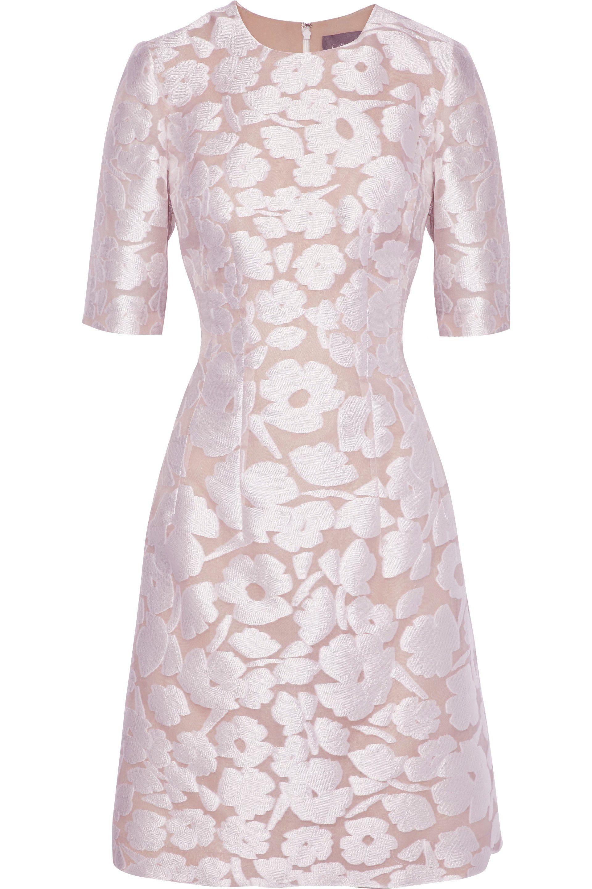 Fil coupé Flocked Darts Concealed hook and zip fastening along back Partially lined Non-stretchy fabric Mid-weight fabric Dry clean. 89% Polyester, 11% Silk. Color: pink