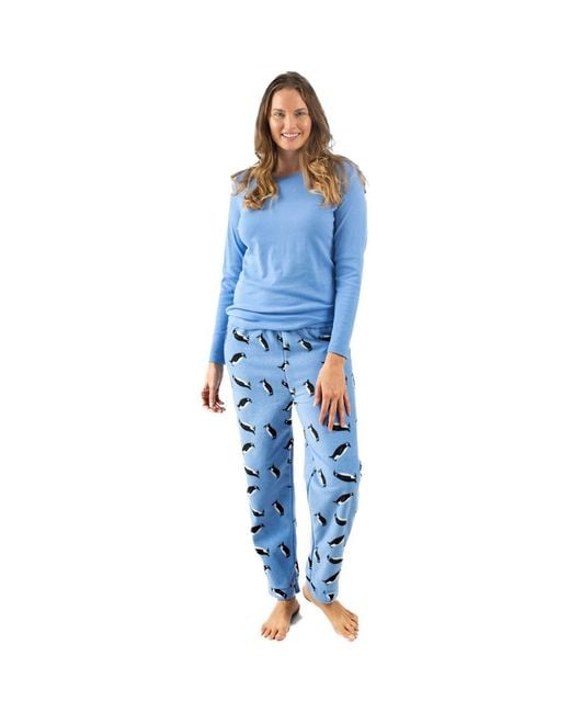 Women's Blue Cotton Top & Fleece Pants Printed Matching Family Holiday Pajama Set