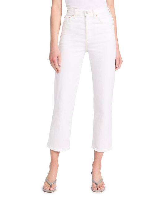 Women's White Ribcage Straight Ankle Jeans