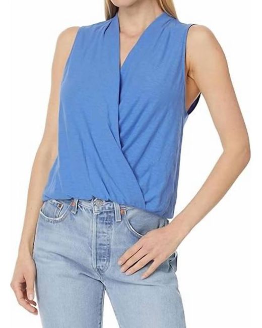 Pair this with your favorite jeans and slides for your next girls night out.The Sleeveless Faux Wrap Top by Lilla P is an elegant choice in a serene Petal hue, perfect for summer dinner parties. Designed with a flattering V-neck and an elastic hem, this 21.5" long blouson tee features a faux wrap front for a sophisticated touch. Crafted from 100% Cotton, this top offers a pull-on closure and suits a variety of occasions when paired with skirts, pants, or shorts. Care instructions - Machine wash Color: blue
