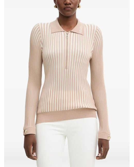 Beige striped zip fastening polo collar long sleeves Size: S. Gender: Female. Material:Viscose/Polyamide. Color: white