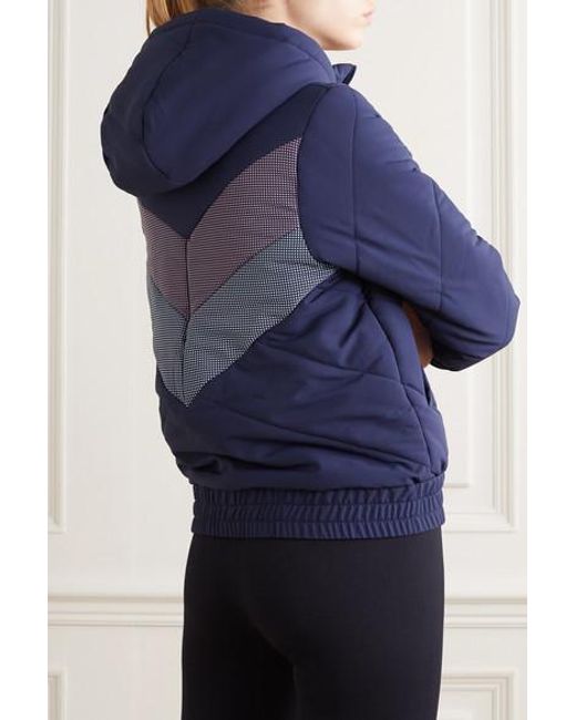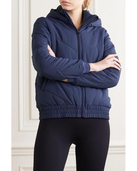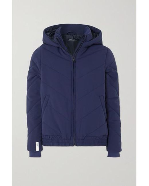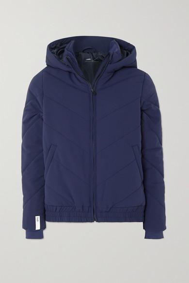 Designed to withstand the cold, LNDR's hooded jacket is made from protective shell and padded for warmth. It has plush fleece-lined pockets and a reflective chevron pattern at the back to keep you visible in low light. Color: blue