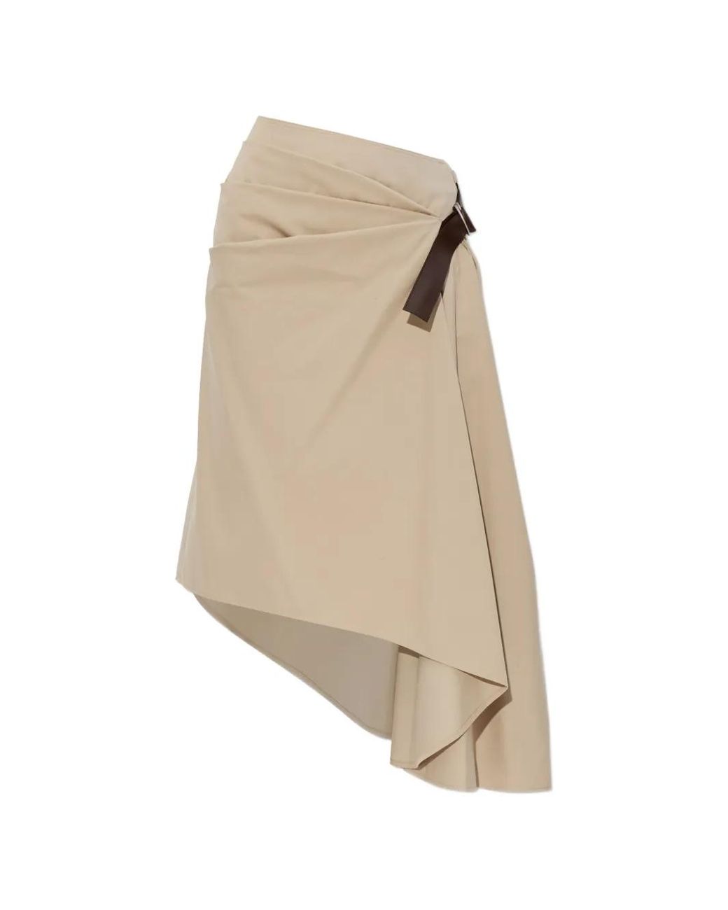 Cotton-Silk Asymmetric Midi Skirt - Natural