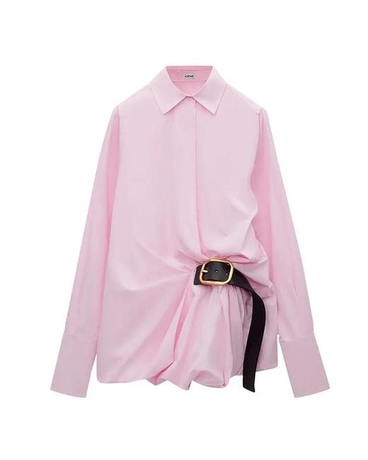 Women's Pink Belted Cotton-Blend Shirt, Brand Size 38 Us