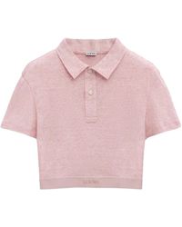 Go to Il Duomo NovaraLOEWE Cropped Beige Cotton and Wool Polo. Crafted from mlange beige cotton and wool, polo collar, two-button fastening on the front, short sleeves, elasticated waistband with logo jacquard, cropped length. Composition: Cotton 72%COTTON