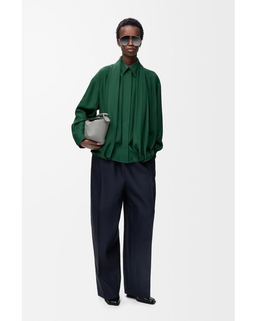 Shirt in lightweight matte silk poplin featuring a balloon silhouette with draping at the front. *Relaxed fit, regular length *Classic collar *Concealed button front fastening, buttoned cuffs *Anagram embroidery placed at the back Color: green