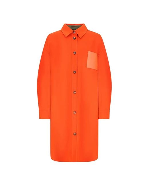 Orange spread collar front button fastening long sleeves buttoned cuffs leather chest patch pocket box pleat to the rear straight hem Size: 38. Gender: Female. Material:Wool/Cashmere.