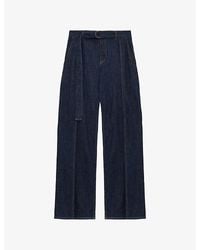 Go to LoeweJeans in medium-weight washed cotton denim featuring a double layer construction with a cut-out at the waist and a removable crocodile embossed leather belt. Regular fit, regular length High waist, straight leg Concealed