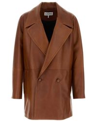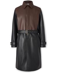 Go to MR PORTERLOEWE's SS25 collection showcases Jonathan Anderson's portrayal of precision. This coat is made from smooth leather that transitions to an ostrich-effect hide, creating a textured dégradé effect. It has tailored details, like notched