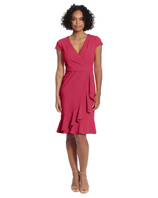 Women's Red Petite V-neck Jersey Fit & Flare Dress