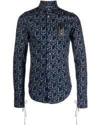 Go to FARFETCHBlack logo patch at the chest crystal embellishment spread collar front button fastening long sleeves buttoned cuffs straight hem When buying this unisex item, keep in mind that it is graded in standard