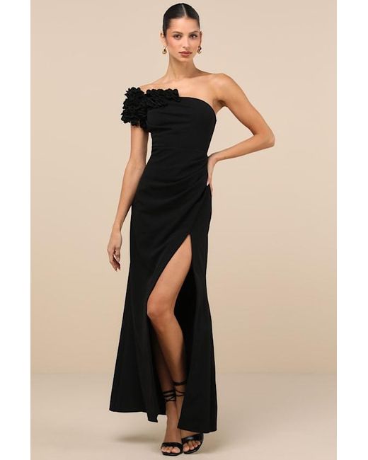 Women's Black Beyond Elegant 3D Floral One-Shoulder Maxi Dress