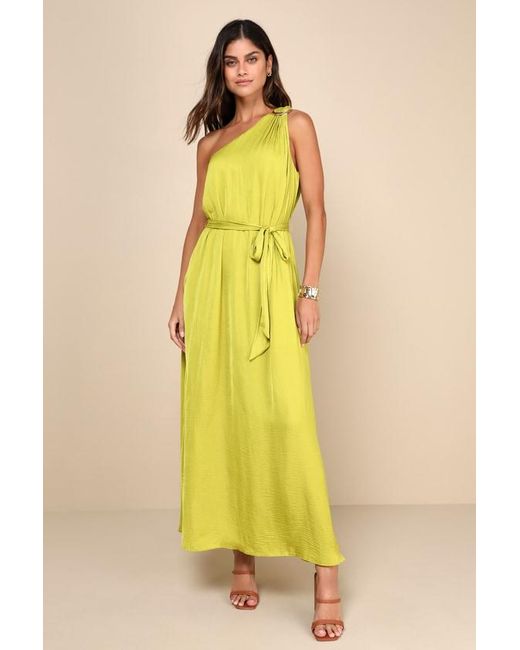 - Goddess Aura Chartreuse Satin One-Shoulder Maxi Dress