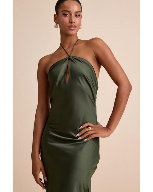 Women's Green Gracie Satin Halter Neck Maxi Dress