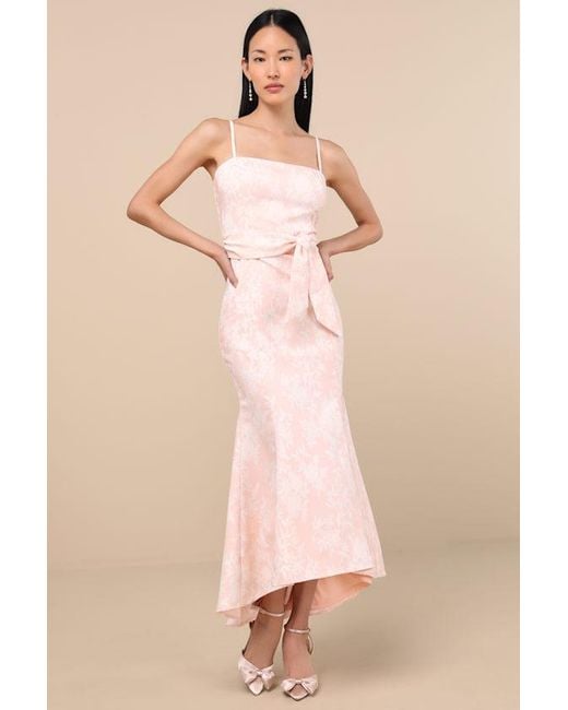 - Gwenth Blush Floral Jacquard High-Low Midi Dress
