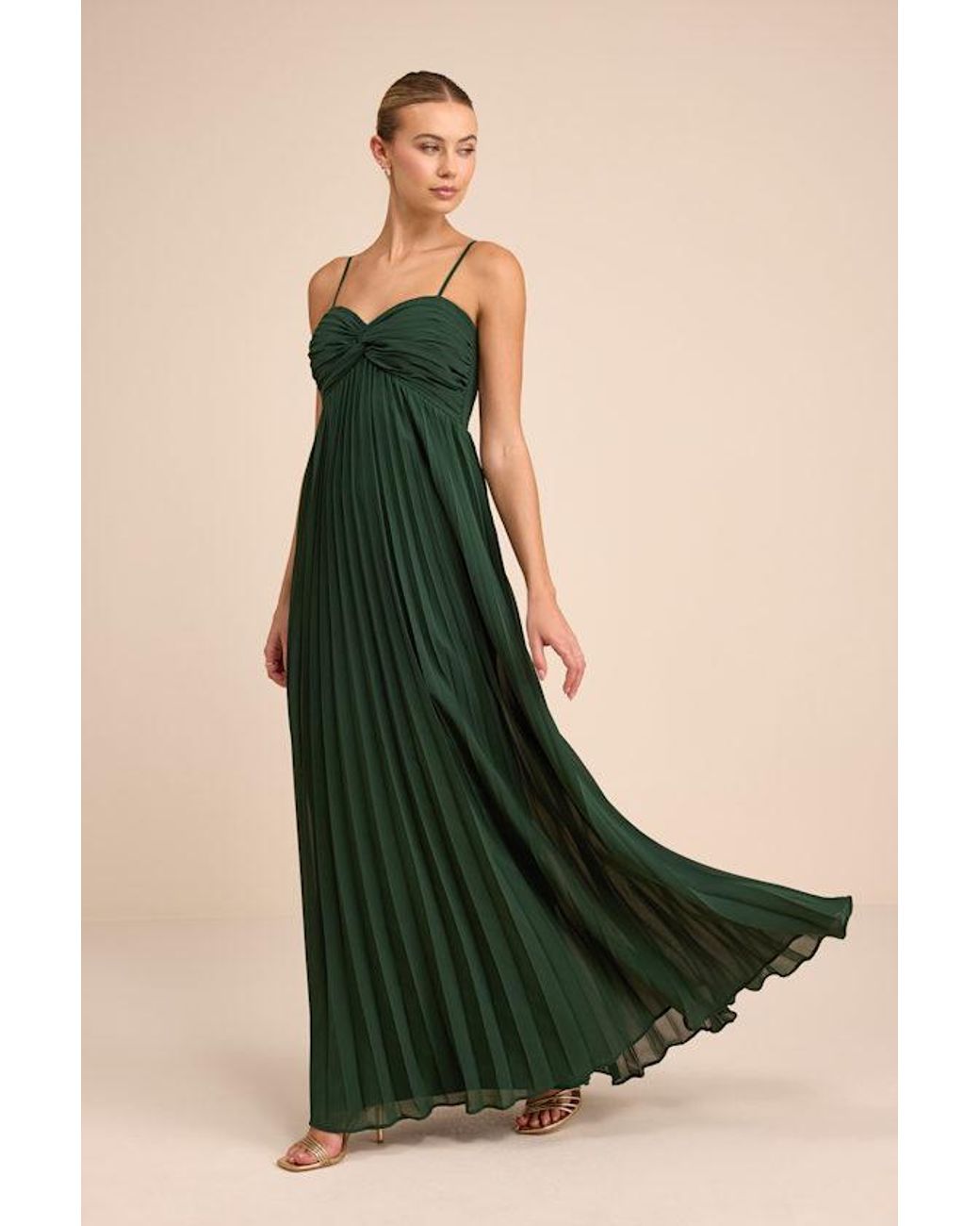 - Jolette Emerald Pleated Knot-Front Maxi Dress