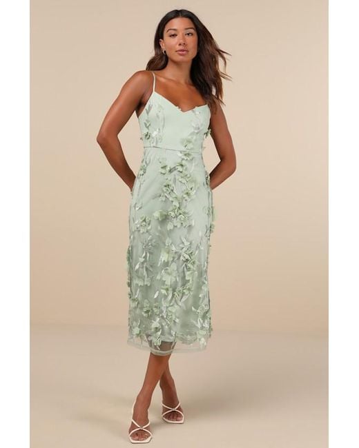 Women's Green Limitless Adoration 3D Floral Embroidered Midi Dress