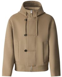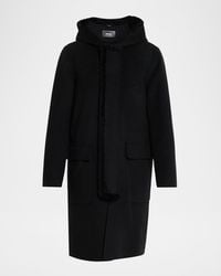 Go to MackageABRAHAM is a double-face wool duffle coat with a long regular-fit silhouette. Shearling lining adds luxe detail to hood and placket with hidden snaps. The timeless design is constructed with hand finished seams,