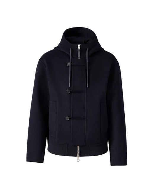 Men's Blue Malik Double-Face Wool Hooded Jacket