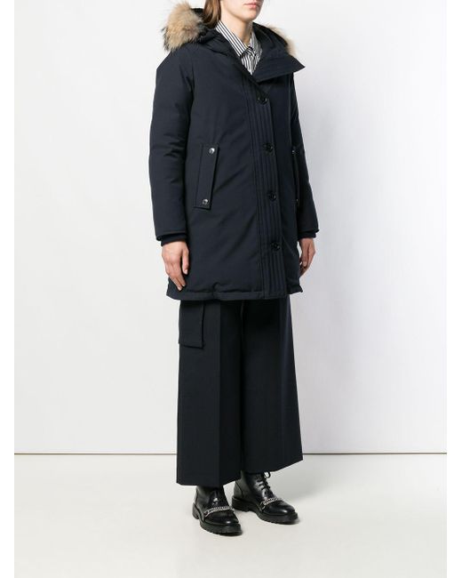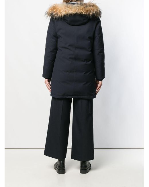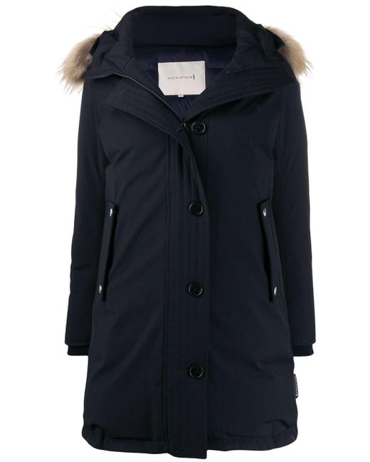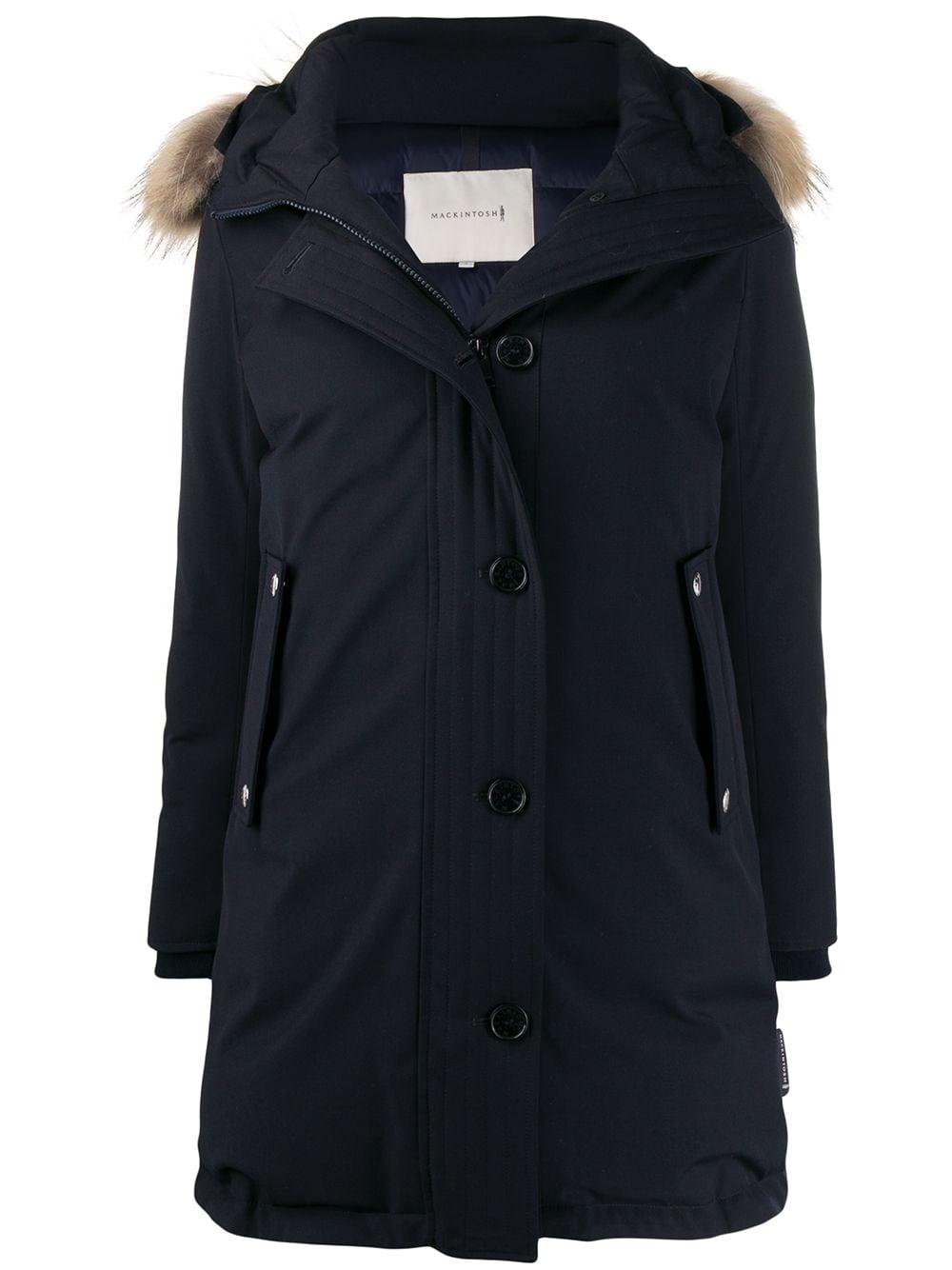 Craftsmanship and evolution form Mackintosh's DNA, with a rich history spanning 100 years, starting with Charles' Mackintosh's discovery of waterproof cotton and rubberised outerwear. This navy Dornoch parka with a removable raccoon fur trimmed collar epitomises the label's timeless appeal. Featuring front pockets, an oversized fit, a drawstring hood, a removable raccoon fur collar, a five button front fastening and a waist adjuster. Color: blue