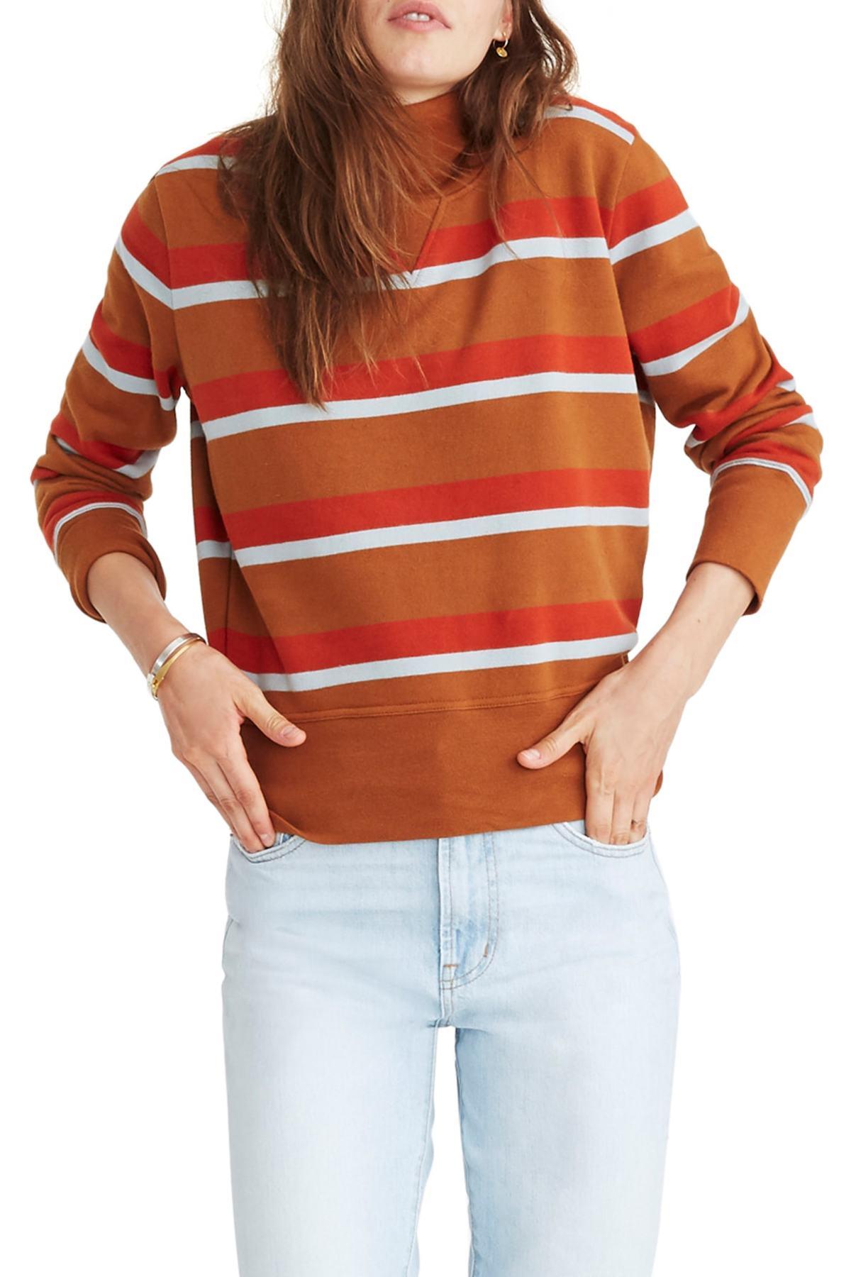 Go to Nordstrom RackMade of brushed terry for a supersoft feel, this turtleneck sweatshirt has a cool shrunken fit. You'll love the old-school details like retro stripes, wide ribbed trim and that little triangle V-stitch at the neck. 24" length (size Large). Turtleneck. Long sleeves. 100% cotton. Machine wash, tumble dry. T.b. D. Cotton. True to size. XXS=000, XS=00-0, S=2-4, M=6-8, L=10-12, XL=14-16, XXL=18 (16W).