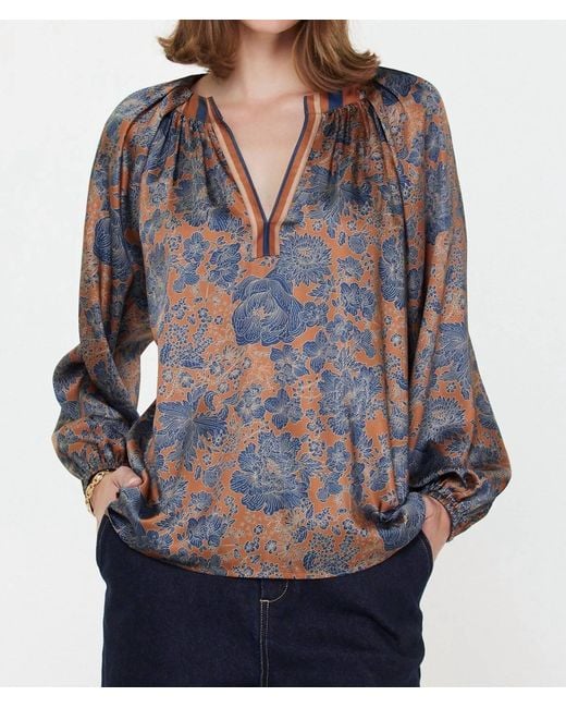 A versatile blouse that works from desk to dinner!Introducing the Women's Split Neck Floral Blouse by Madison, a perfect blend of style and comfort for your closet. This blouse features long sleeves and a chic split V-neckline, making it a standout piece with its floral pattern. Designed for spring's maximalist trend, it's crafted in a pull-on style, ideal for vacations or leisurely days. With its elegant pockets and sophisticated color palette, this blouse effortlessly pairs modern elegance w Color: blue