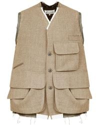 Go to THAHABMaterial: 100% wool. V-neck. Front button fastening. Multiple cargo pockets. Sleeveless. Straight hem. Made in Italy Color: black