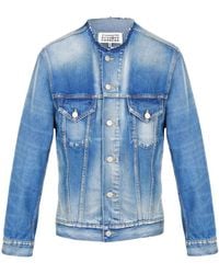 Maison Margiela Men's Gray Collarless Denim Jacket Icy Slip