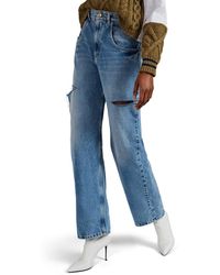 Women's Blue Cutout Wide-leg Jeans
