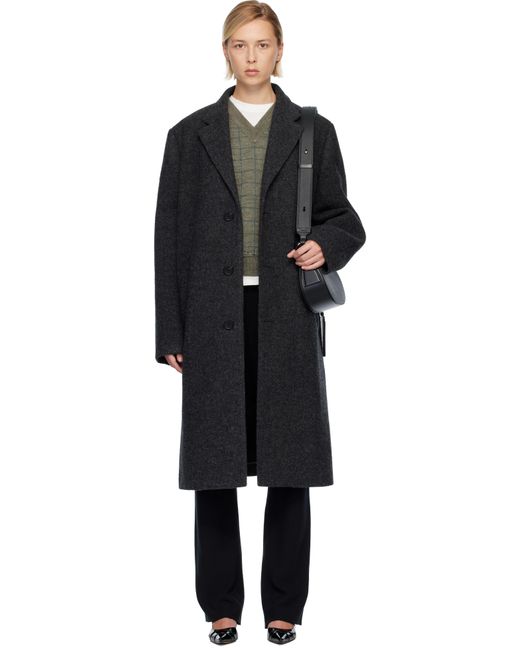 Nylon- and virgin wool-blend melton coat. · Notched lapel · Button closure · Welt pockets · White stitching at back collar · Central vent at back hem · Welt pockets at interior · Partial satin lining Supplier color: Melange carbon