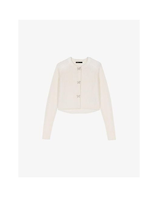 Women's White Bow-Button Round-Neck Wool Cardigan