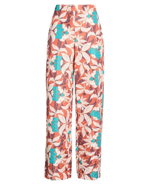 Wide-leg pants, satin, floral-print, no appliqués, high waisted, regular fit, zipper fastening, slit pockets, hand wash or dry clean, do not bleach, do not tumble dry , Color: Rust , Size: 8