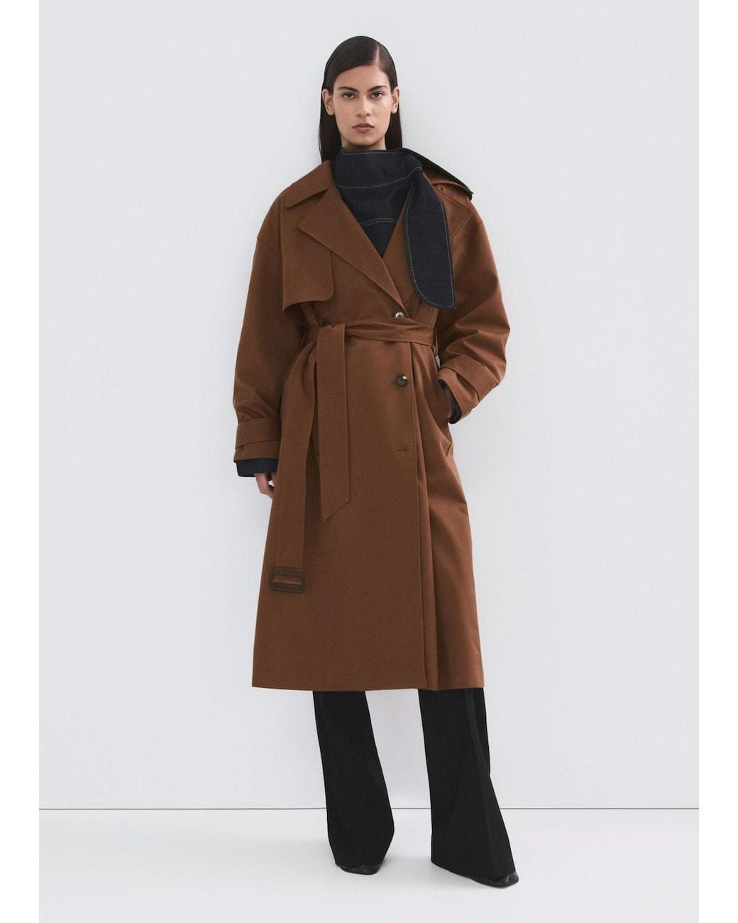 Cotton fabric, Long design, Straight design, Wide lapel collar, Long buttoned sleeve, Two side pockets, Removable belt, Double button fastening