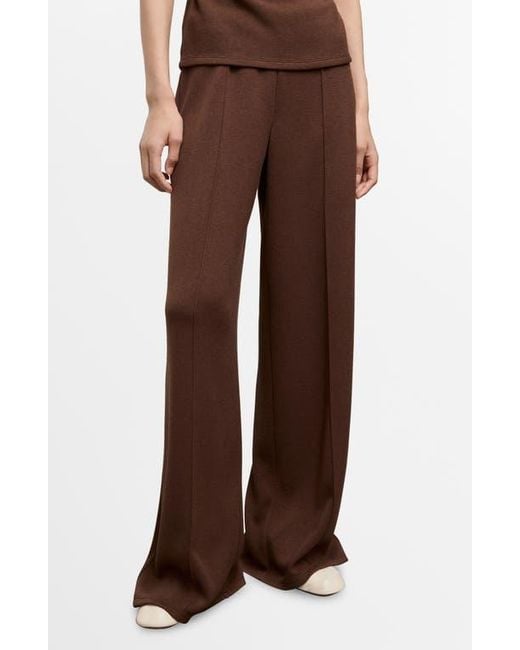 Women's Brown Pleated Wide Leg Pull-On Pants